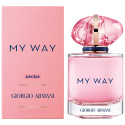My Way Eau de Parfum Nectar nodigt je uit op een reis van de zintuigen en vangt een bevrijde en vrijgevochten visie op vrouwelijkheid. Deze fruitige bloemengeur komt voort uit de verrukkelijke ontmoeting van sappige peer en stralende tuberoos en is verpakt in een nieuwe roze flacon met een doorschijnende roze talisman dop. Geurnoten: - De geur opent met een explosie van frisheid, een sappig perenakkoord en een levendig, aromatisch rabarberakkoord. Deze fruitige noten harmoniëren met het pittige bergamothart en de betoverende oranjebloesem om een intense en verfrissende mix te creëren - In het hart van de geur is een wit bloemenboeket dat een romig hart van tuberoos absolue onthult - Een mix van wit hout en warm cederhout versterkt de basisnoten met een sensuele, rustgevende vanille-bourbon infusie en het kalmerende effect van witte muskus. IK BEN WAT IK LEEF.
