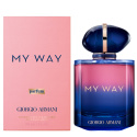 My Way Parfum, een uitnodiging voor een reis vol zelfontdekking, vangt het levensbevestigende gevoel van een stap in het onbekende. Een intens en houtachtig poederig boeket gecreëerd door het contrast tussen de schitterende tuberoos en de majestueuze blauwe bleke iris, ingekapseld in een nieuwe flacon met contrasterende kleuren, gehuld in tinten variërend van donkerblauw in de basis tot schitterend roze in de keel. De geur opent met frisse citrusnoten van bergamotolie uit Calabrië vermengd met sprankelende sinaasappelbloesem in bittere sinaasappelolie uit Egypte. Een nieuw intens hart, gecreëerd door het contrast tussen de zonnige, romige fluweelachtige noten van tuberoos absolue uit India en de majestueuze frisheid van bleke iris uit Frankrijk. De poederige en houtachtige basis wordt versterkt door de sensuele, romige noten van cederhout uit de Verenigde Staten, met de sappige en verslavende infusie van bourbon vanille uit Madagaskar, beide versterkt door witte musk voor een omhullend "tweede huid" effect. Als gevolg van MY WAY's innovatieve navulsysteem, verantwoorde en duurzame inkoop van ingrediënten en bescherming van biodiversiteit door middel van bosbeheerprogramma's, vermindert MY WAY PARFUM zijn ecologische voetafdruk en impact op het milieu. IK BEN WAT IK LEEF. De navulflacon is apart verkrijgbaar.