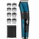 Ultramoderne tondeuse met precisiegeleide messen van Japans staal met een unieke superscherpe snijhoek voor ultrazacht, gemakkelijk knippen, zelfs door langer en dikker haar. Uitzonderlijke prestaties met lithium-ionbatterijen zorgen voor 160 minuten snoerloos gebruik, maar met ononderbroken vermogen, zelfs bij een laag oplaadniveau. Snel opladen gedurende 3 uur. Geavanceerd digitaal display toont de resterende levensduur van de batterij en stap-voor-stap instelling voor ultra-nauwkeurige controle van de snijlengte. Met 45 snijlengtes van 0,6-28 mm. Verwijderbaar mes voor eenvoudige reiniging. Technische informatie: