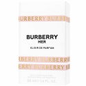 Burberry Her Elixir de Parfum: een gedurfde en sensuele geur voor vrouwen. De geur is het nieuwste hoofdstuk in het intense verhaal van Burberry Her en gaat nu verder dan het avontuurlijke Burberry Her eau de parfum. De geur is ontworpen voor dappere vrouwen die graag het onbekende verkennen. Ze heeft een betoverende uitstraling, is sensueel, onweerstaanbaar en laat zich door niets beperken. Burberry Her Elixir is een nieuwe en intense toevoeging aan de Burberry Her familie, verleidelijk met exquise fruitnoten en een gedurfde explosie van rode bessen en jasmijn. Sensuele noten van vanille en amber ronden de geur af en geven het een zachte en warme indruk. Burberry Her Elixir de Parfum geeft de roze kleur van de Eau de Parfum flacon een diepere tint en een nieuw all-over design, dat de intensiteit van de geur en het zelfverzekerde en sensuele karakter weergeeft. De kartonnen doos is versierd met het Burberry-logo aan de onderkant.