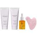 Verbeter onmiddellijk de soepelheid en natuurlijke glans van de huid met deze snel absorberende natuurlijke gezichtsolie. Een krachtige botanische oliemix van jojobazaadolie en squalaan om de droge en geïrriteerde huid diep te hydrateren, te voeden, te kalmeren en te revitaliseren/balanceren. De formule bevat ook antioxidantrijke vitamine C en E, bètacaroteen en wortelzaadolie om bescherming te bieden tegen UV en blauw licht, terwijl je huid een serieuze glow-up boost krijgt.Til je huidverzorgingsroutine naar een hoger niveau met behulp van deze Gua Sha-steen! Vermindert de spierspanning, verhoogt de bloedsomloop, vermindert de ophoping van residuen onder de huid èn zorgt ervoor dat je huid er uigeruster uitziet. Kortom: een mini-face lift (die overigens ook voor andere delen van het lichaam kan worden gebruikt):