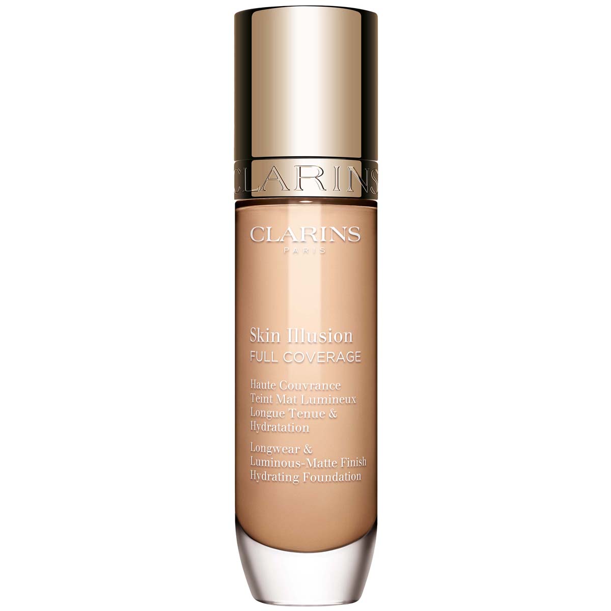 Clarins Skin Illusion Volledige Dekking. Laat zweet, vocht, tranen en gelach je huidskleur niet beïnvloeden! Deze foundation heeft een hoge dekkingsgraad die 24 uur blijft zitten en geeft een comfortabel gevoel dankzij de innovatieve [Skin Fit Technology] formule die bij alle gevoeligheden blijft zitten. De stralende, matte finish helpt glans te verminderen voor een perfecte, zijdezachte huidtint van 's ochtends vroeg tot 's avonds laat. Egaliseert de huid zonder een 'masker'-effect te geven. De lichte en elastische textuur voelt comfortabel aan en laat de huid ademen. Skin Illusion Full Coverage combineert ongeëvenaarde make-up prestaties met bewezen huidverzorgende eigenschappen. Het heeft een lichtgewicht formule verrijkt met zinkgluconaat dat de huid reinigt en een mat effect geeft. De combinatie van hyaluronzuur en micropatch op plantaardige basis hydrateert bovendien 24 uur lang. Het resultaat: een gladdere huid, een matte maar stralende finish en zichtbaar minder imperfecties, voor een huid die er dag na dag mooier uitziet, zelfs zonder make-up. - 24 uur lang bestand tegen water, zweet en zintuiglijke veranderingen - Lichtgewicht formule voor een stralende, matte finish - Verrijkt met zinkgluconaat en hyaluronzuur - Hydrateert en laat de huid ademen - Vermindert glimmen en verbergt onvolkomenhede Afmetingen: 30 ml