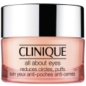All About Eyes Eye Cream is een lichte en verfrissende oogcrème die het gebied rondom de ogen nieuwe energie geeft. Het vermindert zwellingen en fijne lijntjes rond de ogen en verheldert donkere kringen. Clinique's All About Eyes Eye Cream hydrateert de tere huid rond de ogen om deze zacht en verzorgd te houden. De zijdezachte formule voelt comfortabel aan op de oogcontouren en zorgt ervoor dat oogmake-up de hele dag goed blijft zitten.