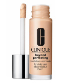 - Foundation en concealer in één die zorgt voor een natuurlijk, meer dan perfect uiterlijk dat de hele dag aanhoudt. Hydraterende make-up die alles bedekt zonder de poriën te verstoppen. De huid kan ademen en voelt prettig. De kleuren zijn ook bestand tegen zweet en vocht. Door een hoog pigmentniveau, dat zorgt voor een feilloze dekkingsgraad, kunnen de tinten er donkerder uitzien wanneer ze worden aangebracht. Maar wanneer Beyond Perfecting Makeup droog is en mooi in de huid is gesmolten, zal deze je een perfecte, foutloze look geven. Een klein beetje is al genoeg! • Gebruik de grote kant (achterkant) van de applicator om de foundation op voorhoofd, wangen en kin aan te brengen. Gebruik daarna de schuine punt van de applicator - die voorzien is van een klein gaatje, waar deze foundation in kan bewaren - om over de neusbrug en langs de kaak te bedekken. Vervaag met je vingers. • Sluit af door de puntige kant te gebruiken om eventuele, kleinere probleemgebieden - onder de ogen, rond de neus, puistjes of rode vlekken - te bedekken. Breng een beetje aan en vervaag goed met je vingers.