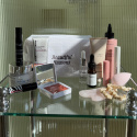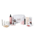 De producten worden geleverd in onze geborduurde make-uptas, exclusief ontworpen voor deze sets. Praktisch, ruim genoeg voor al je favorieten en een must-have voor je zomerse reizen.