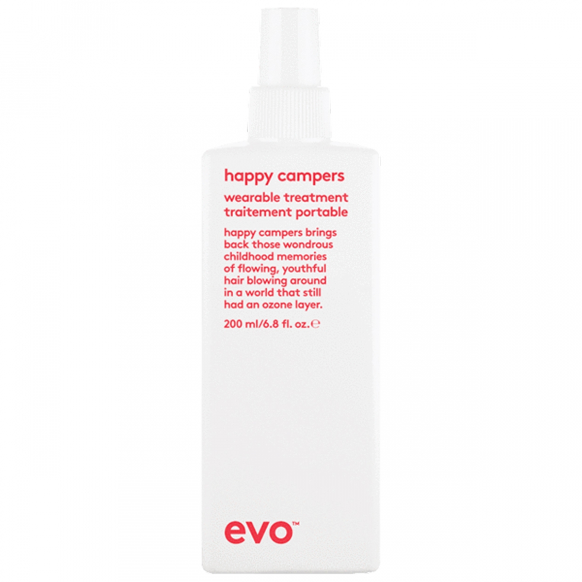 Een lichte stylingbehandeling voor dagelijks gebruik! Evo Happy Campers Wearable Treatment geeft verzwakt haar alles wat het nodig heeft: vocht, verzorging, bescherming en stylingsupport.