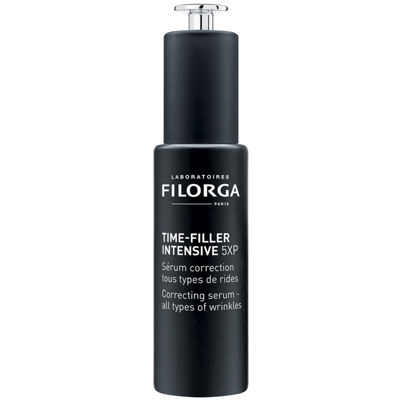Time-Filler Intensive 5XP is een anti-aging serum dat werkt om vijf soorten rimpels en fijne lijntjes glad te strijken. De formule bevat FILORGAs 5XP-complex, geïnspireerd door esthetische behandelingen, en de ontspannende werking bevordert onmiddellijke en langdurige correctie van expressielijnen, diepe rimpels, oppervlakkige rimpels, droogtelijnen en halsrimpels. De zijdezachte textuur glijdt gemakkelijk over de huid en zorgt voor een verfrissend gevoel. Klinische studies hebben indrukwekkende resultaten aangetoond: 97% meldde een onmiddellijk gladmakend effect en dat de huid er na de eerste applicatie egaler uitzag. Na 7 dagen gebruik ervoer 94% dat de gelaatscontouren er zachter uitzagen, en na 28 dagen ervoer 82% dat hun rimpels minder opvallend waren.*