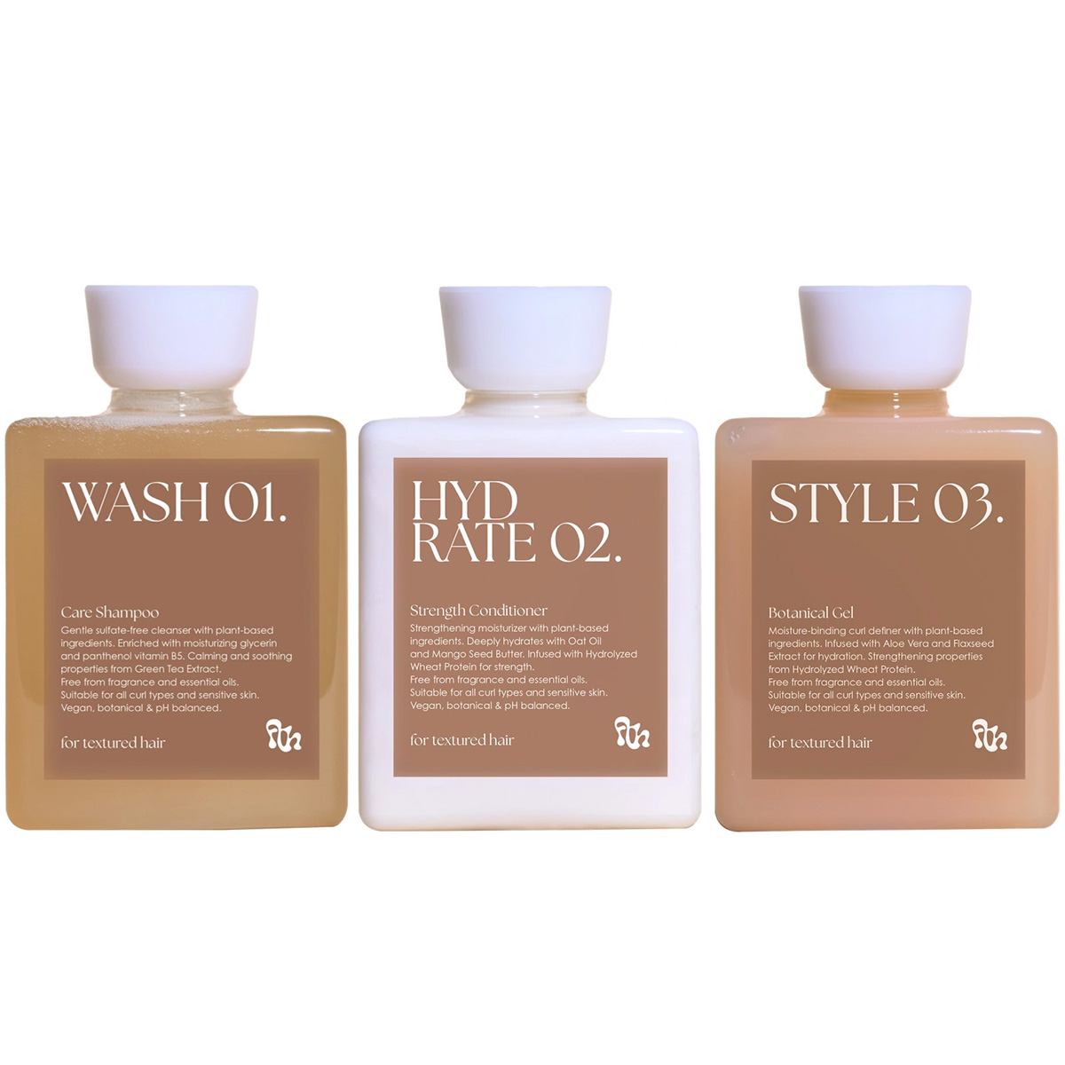 2. Conditioner - For Textured Hair Hydrate 02 (300 ml)HYDRATE 02 is de tweede en hydraterende stap in de WASH 01, HYDRATE 02, STYLE 03 voor getextureerd haar routine. Het is een geurvrije, vochtinbrengende conditioner die getextureerd haar verzacht en het vocht vasthoudt. Gemaakt zonder agressieve chemicaliën en ontwikkeld volgens de cosmetische regelgeving van de EU. Geschikt voor de gevoelige huid. Speciaal ontwikkeld en gecreëerd voor de verzorging van getextureerd haar.