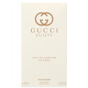 Het #ForeverGuilty universum gaat verder met het nastreven van vrije passie met Gucci Guilty Eau de Parfum Intense For Her. Het Gucci parfum is een interpretatie van de klassieke Gucci Guilty For Her, en deze nieuwe geur heeft een nog intensere aantrekkingskracht. Dit parfum voor vrouwen staat symbool voor de band die bestaat tussen alle mensen die hun liefde vrij willen uiten, zonder de regels en definities van de maatschappij. Een prachtige nieuwe toevoeging aan de Gucci Guilty familie van damesgeuren. Gucci's nieuwe Eau de Parfum Intense For Her is een warme bloemige geur met houtachtige noten - een prachtige interpretatie van de essentie van Gucci Guilty For Her. De heldere geur van mandora-citrus en sappige lychee versmelten met viooltje en creëren een moderne topnoot. Het prachtige boeket van ylang-ylang en tuberoos in de hartnoot wordt versterkt door sensuele en donkere pruim. De krachtige houtachtige noten van patchoeli en vetiver vermengen zich met vanille om een gedurfd en vrouwelijk karakter te creëren dat lang aanhoudt. Geurfamilie: amber Topnoot: Mandora Middennoot: Ylang Ylang Basisnoot: Patchoul
