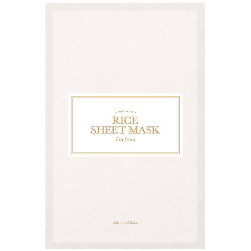 Rice Sheet Mask is geformuleerd met rijstextract en doordrenkt met een melkachtige essence van Goami-rijst, een Koreaanse rijst die rijk is aan voedingsvezels en bekend staat om zijn huidverzorgende eigenschappen. Het extract wordt verkregen via een zorgzaam proces bij 90 graden gedurende 60 minuten, wat helpt om de natuurlijke eigenschappen en zuivere geur van de rijst te behouden. Goami-rijst draagt bij aan een zachtere, gehydrateerde huid met een helderdere en egalere teint. Het masker is geïnspireerd op de bestseller Rice Toner van I’m From en combineert rijstextract met hydraterende en verzachtende ingrediënten zoals glycerine, squalaan en panthenol voor een zijdezacht gevoel. Het zachte en lichte sheet mask vormt zich naar de gezichtscontouren als dun rijstpapier en brengt de voedende ingrediënten effectief over. De melkachtige essence wordt zacht door de huid opgenomen en laat de huid gehydrateerd en egaal achter met een frisse gloed.