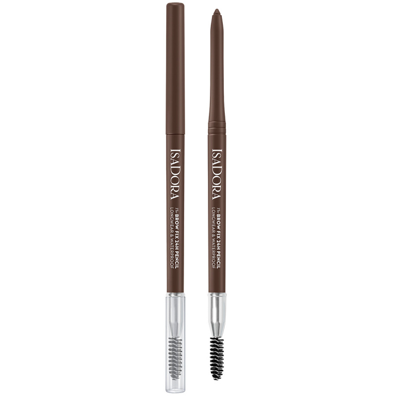 Waterproof, veegvrij wenkbrauwpotlood dat de wenkbrauwen 24 uur lang vult en in vorm brengt. Ben je op zoek naar een wenkbrauwpotlood om je wenkbrauwen te vullen, fixeren en vorm te geven, dat de hele dag blijft zitten en een natuurlijke formule heeft? Dan ben je bij ons aan het juiste adres. Wij hebben wat je nodig hebt! Ons Brow Fix 24H Pencil heeft een draaibaar potlood om snel en precies te vullen en een zacht borsteltje met microhaartjes om je wenkbrauwen gemakkelijk te blenden en in vorm te brengen. De formule is gebaseerd op natuurlijke wassen en verrijkt met tea tree wax en zonnebloemolie, waardoor het een praktisch glide-on effect geeft. Het is waterproof en blijft tot 24 uur zitten. Je kunt er zeker van zijn dat je wenkbrauwen van 's ochtends vroeg tot 's avonds laat in topvorm zijn. Het potlood is verkrijgbaar in 4 kleuren en heeft een matte afwerking voor een natuurlijkere look. Opschroefbaar potlood om wenkbrauwen heel precies in te vullen