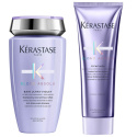 Kérastase Blond Bain Ultra Violet is een effectieve, paarse shampoo die rijk is aan neutraliserende ingrediënten die ongewenste warme en gele ondertonen verwijderen en verminderen. Perfect voor koel faux-blonde en grijs haar, en wanneer je deze shampoo regelmatig gebruikt, beschermt het tegen ongewenste warme tinten, zodat je blonde kleur langer koel blijft. Het beschermt het haar tegen dagelijkse oxidatie en onzuiverheden, hydrateert en maakt het zacht. Kérastase Blond Cicaflash is een lichte, lavendelkleurige gel met opaalglans, en heeft naast het herstellende effect van een masker ook de lichte finish van een conditioner!