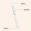 Zachte ovale haarborstel met een combinatie van zwijnenhaar, kunststof en kunststof pennen waarmee je je haar moeiteloos ontklit voor een optimaal resultaat. De haarborstel stimuleert de hoofdhuid en verhoogt de bloedcirculatie. Hij verdeelt de natuurlijke olie van de hoofdhuid van de haarwortels naar de punten voor glanzend, sterk, en gezond haar. Het luchtkussen past zich aan de vorm van het hoofd aan en de borstel heeft een praktisch formaat.
