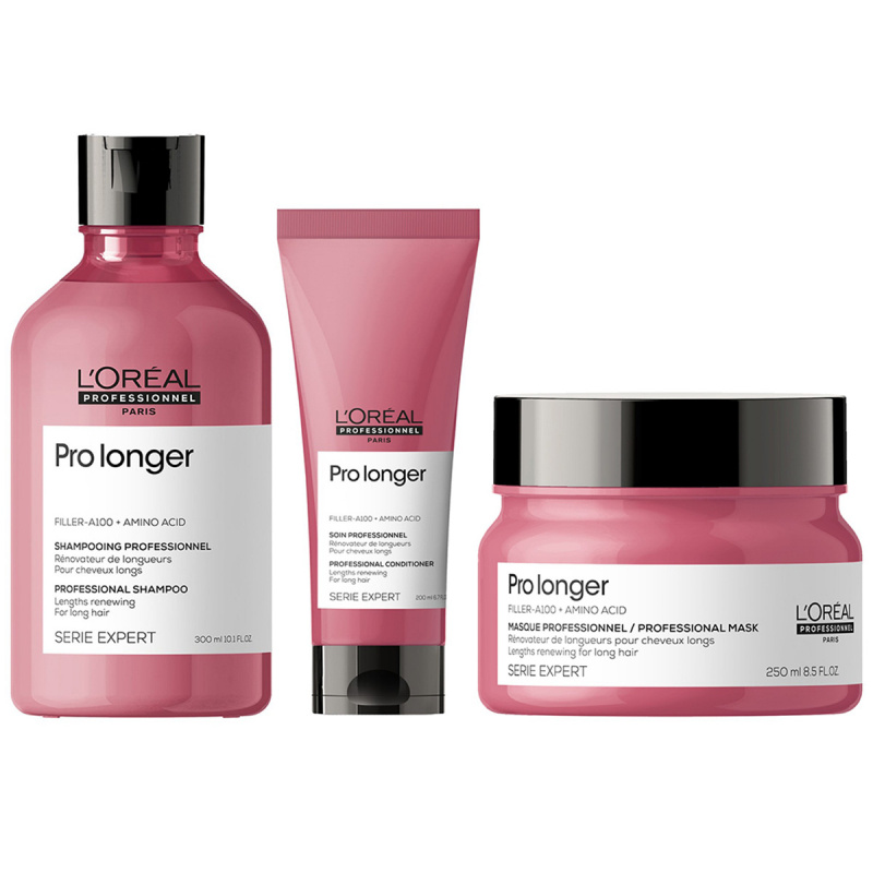 3. Mask - L'Oréal Professionnel Pro Longer Masque (250ml)Lengtevernieuwend* masker voor lang haar. Professionele formule die is verrijkt met Filler-A100 en aminozuur. Breng aan op handdoekdroog haar na gebruik van Pro Longer shampoo. Laat 3-5 minuten intrekken. Spoel grondig uit. Bij contact met de ogen onmiddellijk met veel water spoelen.