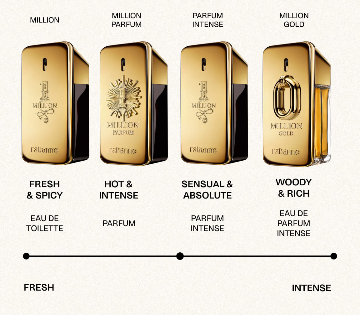 Dankzij het grote succes is One Million uitgegroeid tot een volledige geurcollectie. Hieronder vind je de verschillende interpretaties.