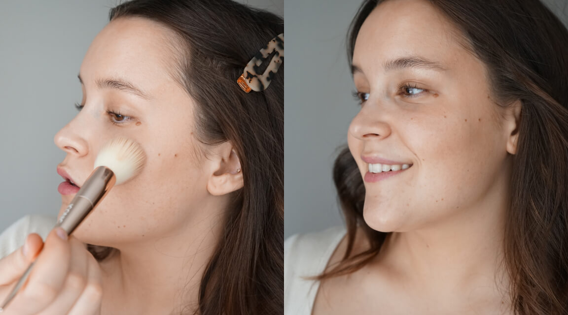 Als de skincare is ingetrokken beginnen we met Glowing Base, een zijdezachte primer met parelmoerpigment die de teint egaliseert, de huid voorbereidt op make-up en een fantastische glow geeft. Voor een mooi zongebruind effect kun je de primer mixen met Bronzing Gel en gelijkmatig aanbrengen over gezicht en decolleté. Dit is pas echte glass skin!