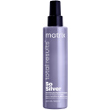 Je All-In-One is nu nog cooler! De nieuwe So Silver All-In-One toning leave-in spray van Matrix, voedt het haar en houdt je blonde en zilveren haar koel! De toning spray neutraliseert ongewenste warme, gele ondertonen in blond haar door een laagje paarse kleurstof rond de haarstrengen aan te brengen. Het leave-in product biedt ook 10 verfraaiende voordelen die voeden, glans toevoegen, kroes verminderen en breken voorkomen! Gebruik dit product op zichzelf of als stap in je Brass Off routine wanneer je het wilt verstevigen. Afmetingen: 200 ml