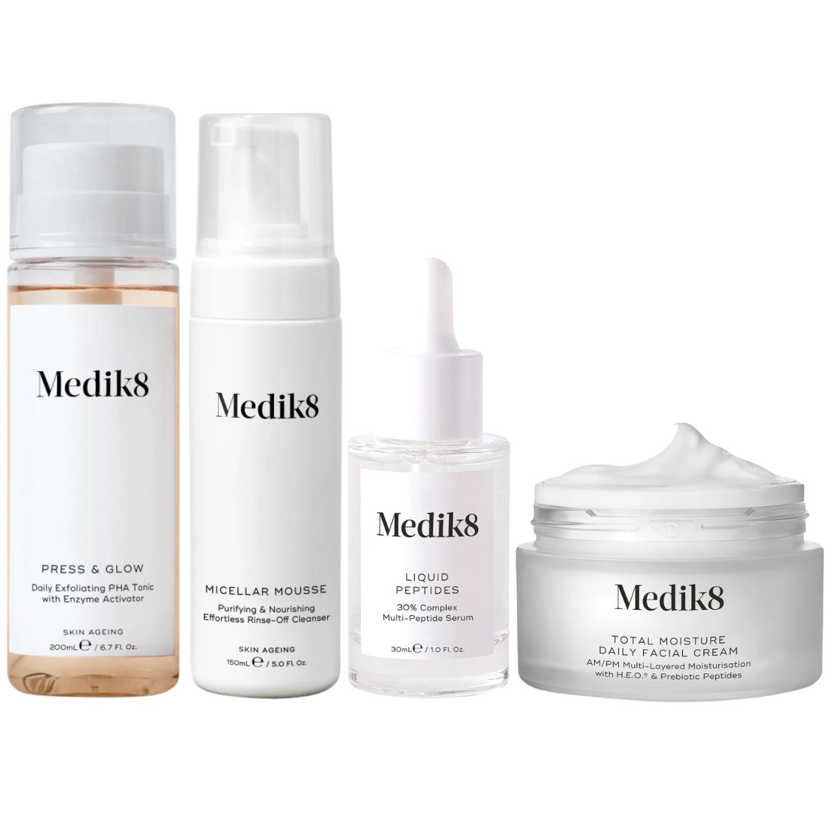 3. Serum - Medik8 Liquid Peptides (30ml)Serum met 30% peptidenmix voor een echte anti-aging boost! Dit product is voor iedereen die een alternatief wil voor vitamine A. Het stimuleert de aanmaak van collageen en elastine voor een gladdere huid en bevat hyaluronzuur voor hydratatie.