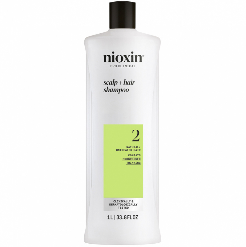 Nioxin System 2 Cleanser Shampoo voor natuurlijk haar met progressieve uitdunning is de eerste stap in een driedelige Nioxin routine, speciaal samengesteld om het haar en de haarstructuur te versterken. Deze professionele shampoo reinigt de huid en verwijdert vuil, overtollige olie en andere omgevingsresten van de hoofdhuid en het haar. Deze klinisch en dermatologisch geteste shampoo bevat niacinamide en biotine om de hoofdhuid en het haar van wortel tot punt te hydrateren terwijl het de haarstructuur verdikt en versterkt. Werk af met Nioxin System 2 Conditioner en Nioxin System 2 Treatment voor het beste resultaat. Verkrijgbaar in 2 maten: 300 ml en 1000 ml.