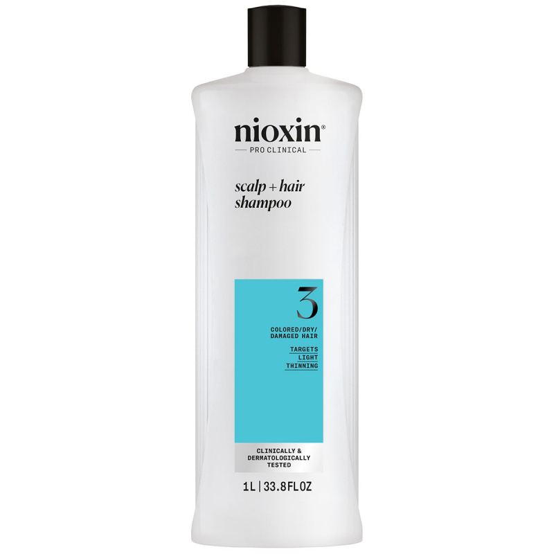 Nioxin System 3 Cleanser Shampoo voor gekleurd haar met lichte uitdunning is de eerste stap in een driedelige Nioxin-routine, speciaal ontwikkeld om het haar en de haarstructuur te versterken. Deze professionele shampoo reinigt de huid en verwijdert vuil, overtollige olie en andere omgevingsresten van de hoofdhuid en het haar. Deze shampoo, die klinisch en dermatologisch getest is, bevat witte thee-extract en hydrateert de hoofdhuid en het haar van wortel tot punt, terwijl het de haarstructuur verdikt en versterkt. Werk af met Nioxin System 3 Conditioner en Nioxin System 3 Treatment voor het beste resultaat. Verkrijgbaar in 2 maten: 300ml en 1000ml.