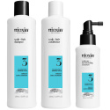 Nioxin System 3 Trial Kit is een haarverzorgingssysteem voor gekleurd haar met lichte uitdunning. Deze unieke set van drie professionele haarverzorgingsproducten is speciaal ontworpen als haarverdikkingsbehandeling die zorgt voor kleurbescherming en voller haar. De Nioxin System 3 routine verfrist de hoofdhuid, vermindert haaruitval door breuk, versterkt het haar en geeft gekleurd haar een gezonde glans. Nioxin Cleanser Shampoo verwijdert vuil, overtollige olie en andere omgevingsresten van de hoofdhuid en het haar. Nioxin Scalp Therapy Conditioner is een lichtgewicht conditioner die het haar veerkracht geeft en tegelijkertijd de hoofdhuid en het haar van wortel tot punt hydrateert. Nioxin Scalp & Hair Treatment verfrist de hoofdhuid en helpt het haar er dikker uit te laten zien door de volheid van elke haarlok te vergroten. Nioxin System 3 Trial Kit is een combinatie van de oude Nioxin System 5 Kit en Nioxin System 3 Kit. De nieuwe Nioxin System Kit 3 is geschikt voor droog, beschadigd en gekleurd haar en richt zich op mensen met milde haaruitval. Als je Kit 5 al geweldig vond, dan zul je de nieuwe Kit 3 geweldig vinden. Het is klinisch bewezen dat de kit haaruitval door gebroken haren tot wel 91%** vermindert.