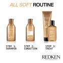 Shampoo die droog en broos haar zacht maakt en hydrateert. Het All Soft haarverzorgingssysteem met omega-6 verrijkte arganolie voedt, versterkt en verzacht en houdt beweging en flyaways onder controle. Redken's exclusieve RCT Protein Complex behandelt het haar van de wortel tot aan de punt. Het haar wordt zijdezacht en beter hanteerbaar, soepeler en met een blijvende glans.