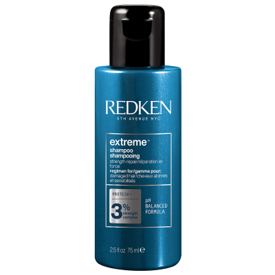 De Redken Extreme-lijn is verrijkt met een proteïnecomplex dat helpt de haarvezel op te bouwen en sterker te maken. Bij gebruik als compleet systeem kan haar tot wel 73% minder breuk vertonen en merkbaar sterker en gezonder aanvoelen.*