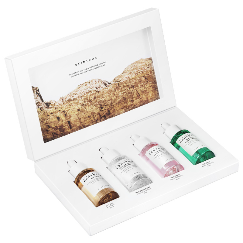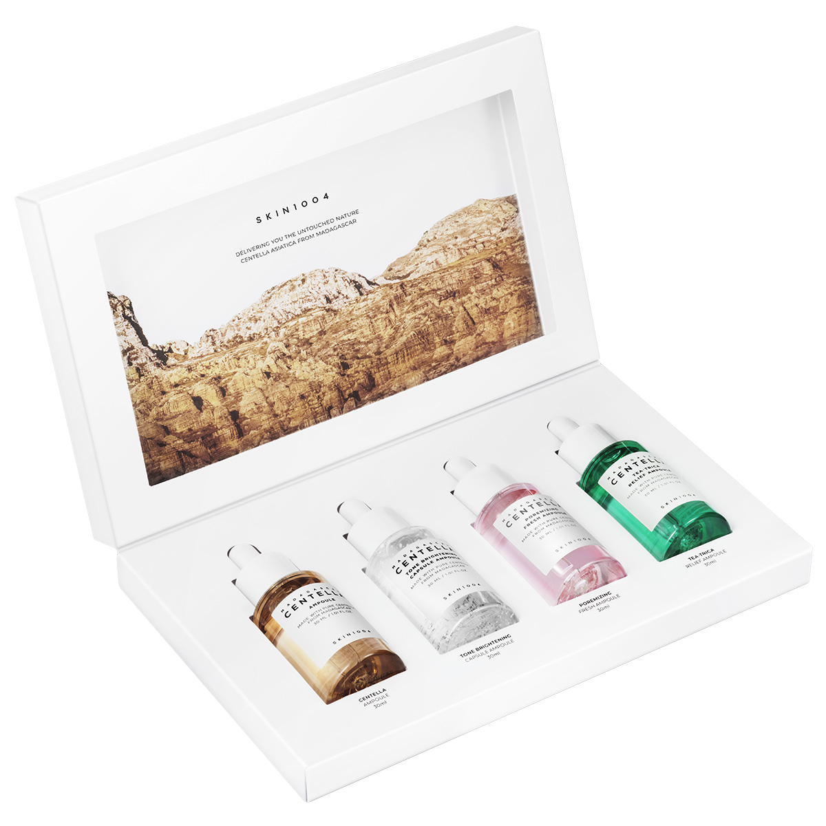 - Centella Ampoule: Aqua, Glycerin, Butylene Glycol, Centella Asiatica Extract, 1,2-Hexanediol, Cellulose Gum, Ethylhexylglycerin, Tone Brightening Capsule Ampoule: Aqua, Butylene Glycol, Niacinamide, Glycerin, Tranexamic Acid, 1,2-Hexanediol, Betaine, Centella Asiatica Extract, Zea Mays (Corn) Starch, Xanthan Gum, Microcrystalline Cellulose, Mannitol, Panthenol, Pentylene Glycol, Ethylhexylglycerin, Hydroxyethylcellulose, Madecassoside, Acrylates/C10-30 Alkyl Acrylate Crosspolymer, Arginine, Hydrogenated Lecithin, Xylitylglucoside, Anhydroxylitol, Xylitol, Glucose, 3-O-Ethyl Ascorbic Acid, Lactobacillus Ferment, Poremizing Fresh Ampoule: Aqua, Butylene Glycol, Propanediol, 1,2-Hexanediol, Aloe Barbadensis Leaf Extract, Centella Asiatica Extract, Glycereth-26, Hydroxyacetophenone, Glycerin, Carbomer, Tromethamine, Panthenol, Ethylhexylglycerin, Disodium EDTA, Dipotassium Glycyrrhizate, Ammonium Polyacryloyldimethyl Taurate, Biosaccharide Gum-1, Hyaluronic Acid, Hydrolyzed Hyaluronic Acid, Sodium Hyaluronate, Hydroxyethylcellulose, Chamomilla Recutita (Matricaria) Flower Extract, Mineral Salts, Tripeptide-3, Acetyl Hexapeptide-8, Acetyl Octapeptide-3, Copper Tripeptide-1, Palmitoyl Pentapeptide-4, Palmitoyl Tetrapeptide-7, Palmitoyl Tripeptide-1, Tripeptide-1, Tripeptide-2, ,Tea-Trica Relief Ampoule: Centella Asiatica Extract, Chamaecyparis Obtusa Water, Melaleuca Alternifolia (Tea Tree) Leaf Water, Pinus Palustris Leaf Extract, Glycerin, Butylene Glycol, Methyl Gluceth-20, Dipropylene Glycol, Glycereth-26, 1,2-Hexanediol, Aqua (Water), Hydroxyacetophenone, Ammonium Acryloyldimethyltaurate/VP Copolymer, Propanediol, Polyglyceryl-10 Laurate, Ethylhexylglycerin, Pentylene Glycol, Caprylyl Glycol, Disodium EDTA, Melaleuca Alternifolia (Tea Tree) Leaf Oil (200 ppm), Oenothera Biennis (Evening Primrose) Flower Extract, Pueraria Lobata Root Extract, Ulmus Davidiana Root Extract